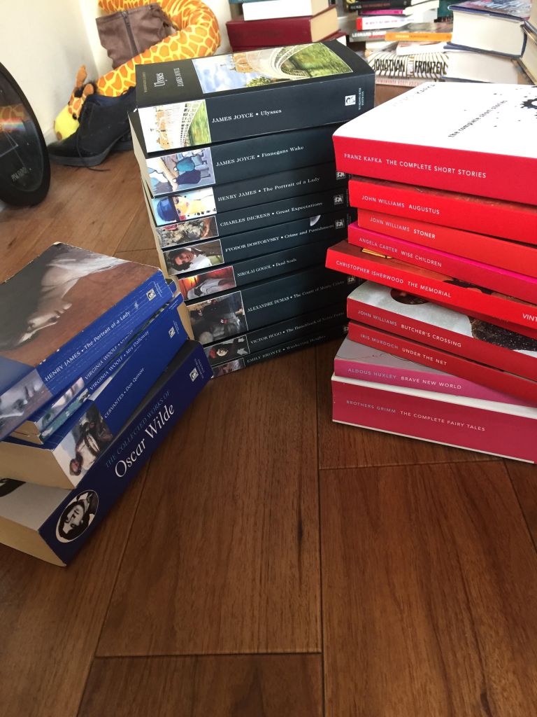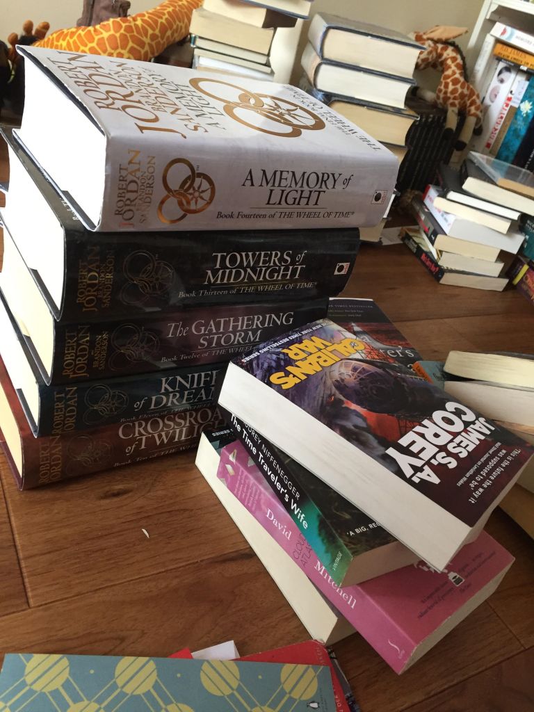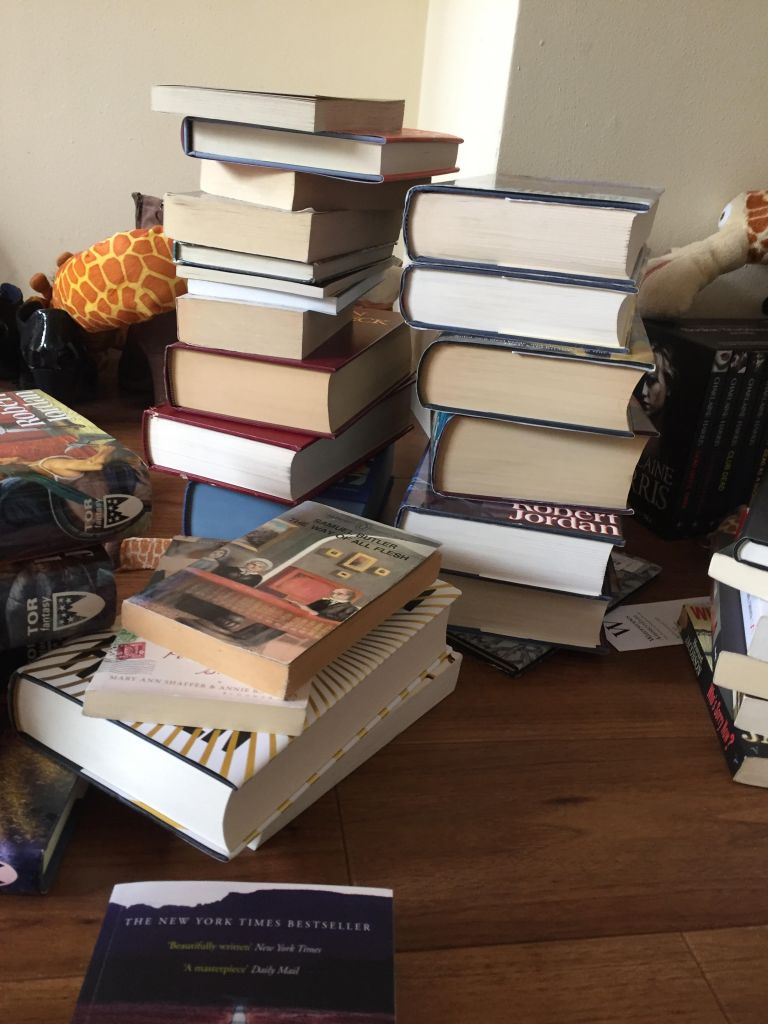 (Dit zijn trouwens niet alle boeken die ik heb. Dit zijn restjes die niet in mijn boekenkast pasten. Ik zou nog een stuk kunnen schrijven over wat je moet doen als je te veel boeken hebt – als ik dat tenminste wist…)