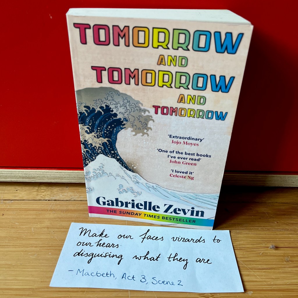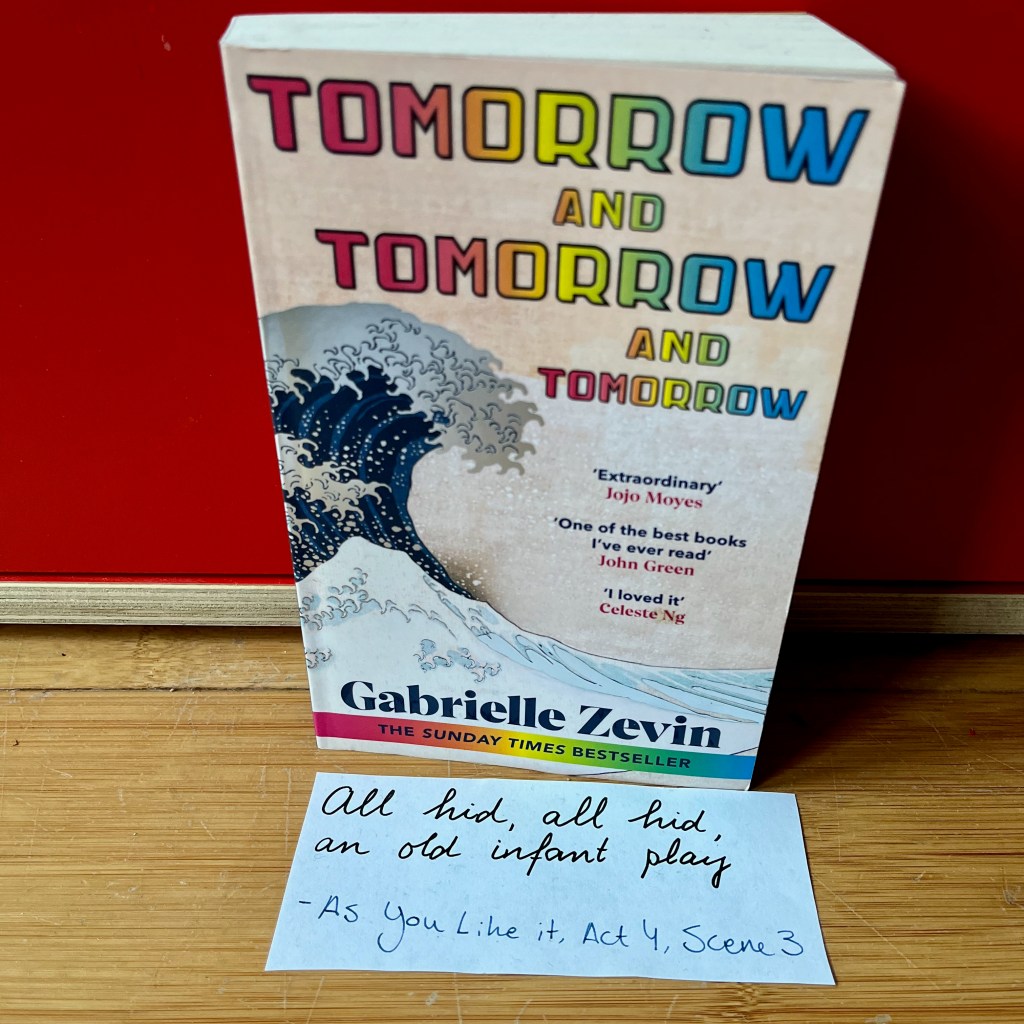 Ten slotte zijn Sam en Sadie niet de enige mensen die games ontwikkelen. Zevin speelt namelijk verstoppertje met haar publiek; ze verweefde Shakespeare op zoveel verschillende manieren in haar roman, dat haar lezers (of in ieder geval ik) zich niet konden beheersen en verwoed op zoek gingen naar alle verwijzingen in de tekst. Ze kunnen gevonden worden in de titel (die komt uit Macbeth en wordt volledig genoemd in de roman), in Master of the Revels, het spel dat Sadie ontwikkelt over de toneelschrijver Christopher Marlowe, een tijdgenoot en rivaal van Shakespeare, en in het Shakespearestuk waar Marx in speelt als student. Ook wordt zijn toneelstuk De storm meerdere keren genoemd, en is de voorkant van het boek het beroemde Japanse schilderij De grote golf van Kanagawa, dat ook over een storm gaat – en dit laat zien dat Japan ook een invloed is geweest op de roman – en de beginscène van hun eerste spel gaat ook over een storm. Er zijn natuurlijk nog veel meer voorbeelden te vinden, zo lang je weet waar je naar op zoek bent.