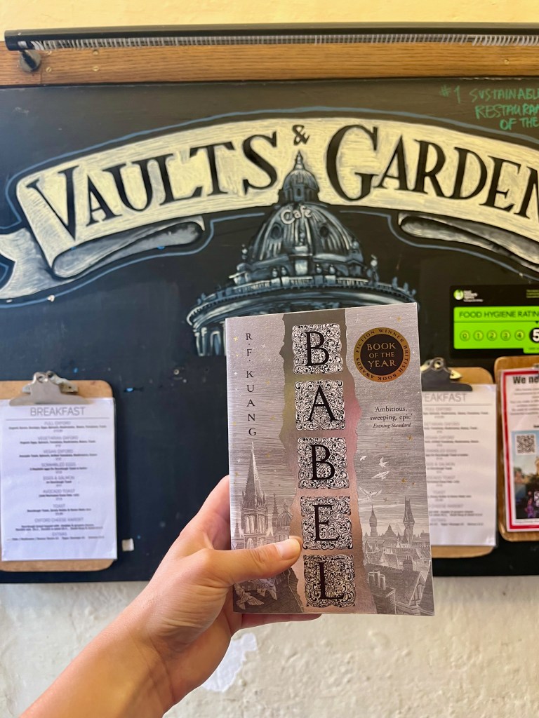 In de introductie van Babel staat dat Kuang haar uiterste best heeft gedaan om een zo correct mogelijk beeld te geven van het Oxford van de negentiende eeuw, maar dat ze zich wel enkele vrijheden heeft gepermitteerd. Een daarvan, zo schrijft ze, is het Vaults & Garden café in Oxford, omdat ze daar zelf zo lekker gegeten heeft en dit haar personages ook gunde. Nu is dat niet erg, maar die aandacht in de introductie zorgt voor een enorme nadruk op elke keer dat dit café genoemd wordt. Sterker nog, toen ik in Oxford was, had ik meer zin om dat café op te zoeken dan dat ik bezig was met de echte boodschap van het boek. En het lijkt me dat dat niet bepaald de bedoeling was.
