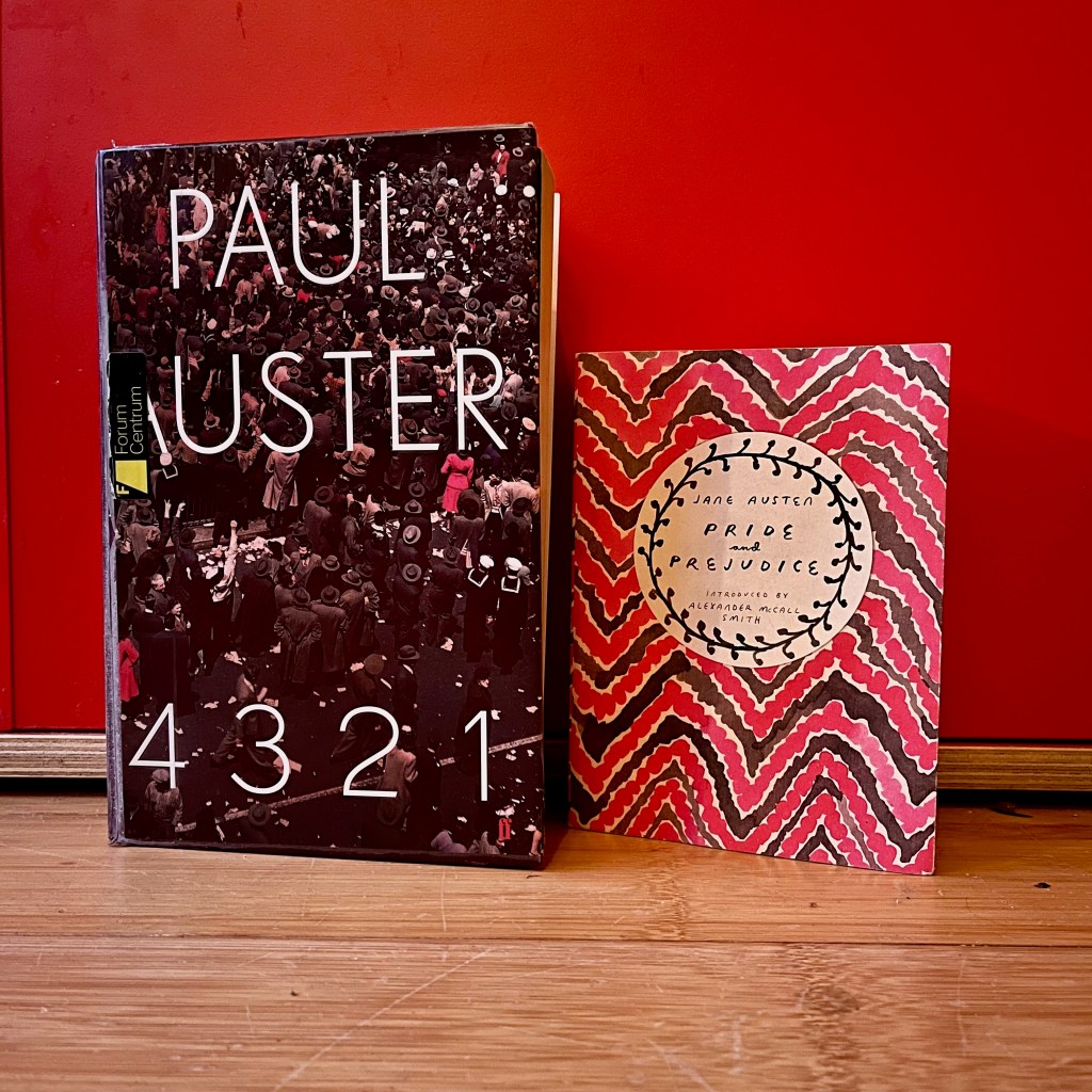 Ik lees nooit twee boeken tegelijkertijd. Het leidt me af, ik vergeet welk personage bij welk verhaal hoort, en ik merk vaak dat ik, als ik eenmaal in een nieuw boek begonnen ben, ik de eerste niet meer oppak. Deze week maakte ik echter een uitzondering. Ik moest namelijk Paul Austers enorme 4321 laten liggen omdat ik Jane Austens klassieker Pride and Prejudice moest lezen voor mijn boekenclub. Ik ben zo bang dat ik ze door elkaar ga halen. Wil je weten hoe dat zou zijn? Lees dan door!